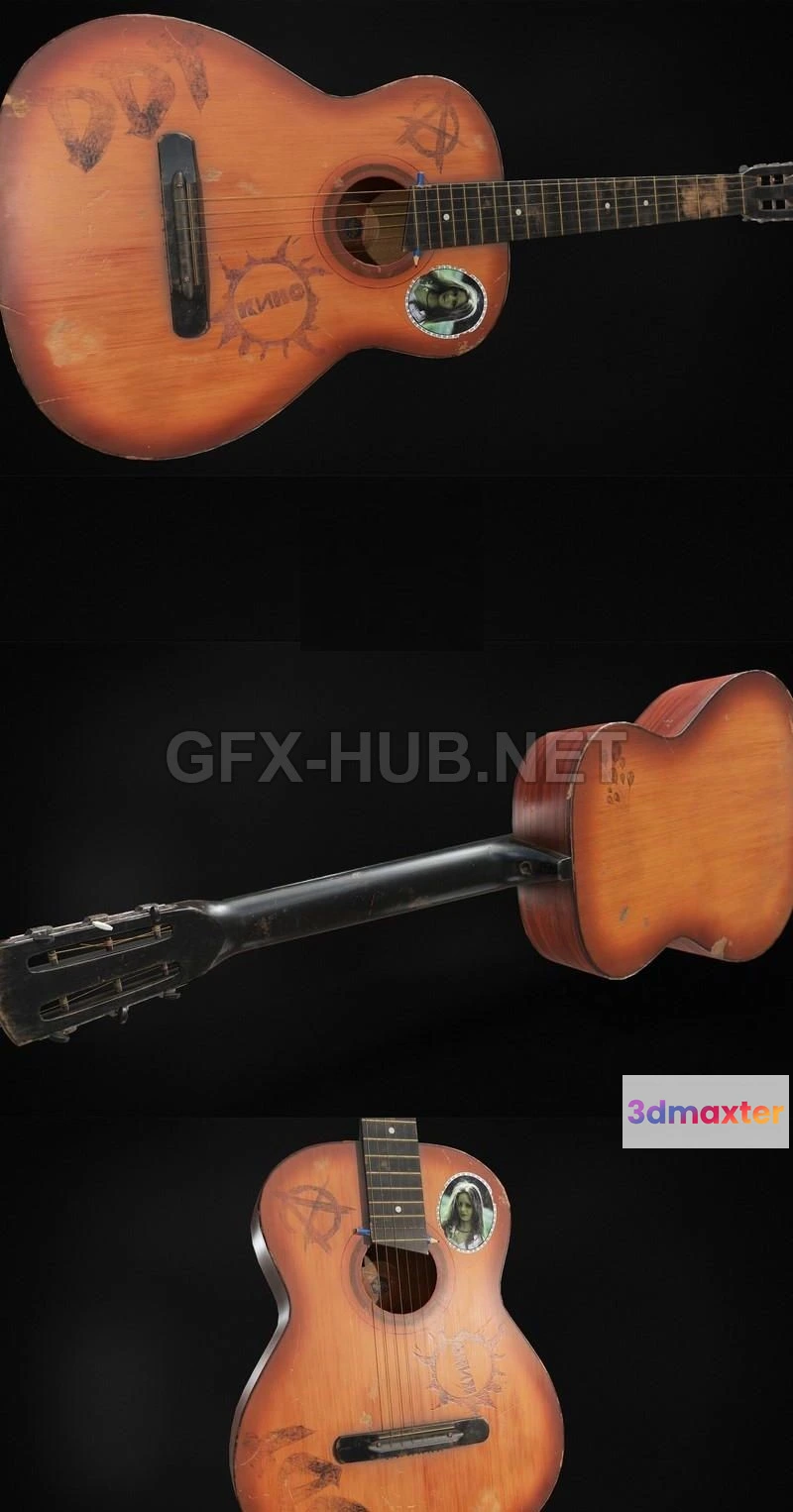 - Name: PBR Game 3D Model – Old guitar