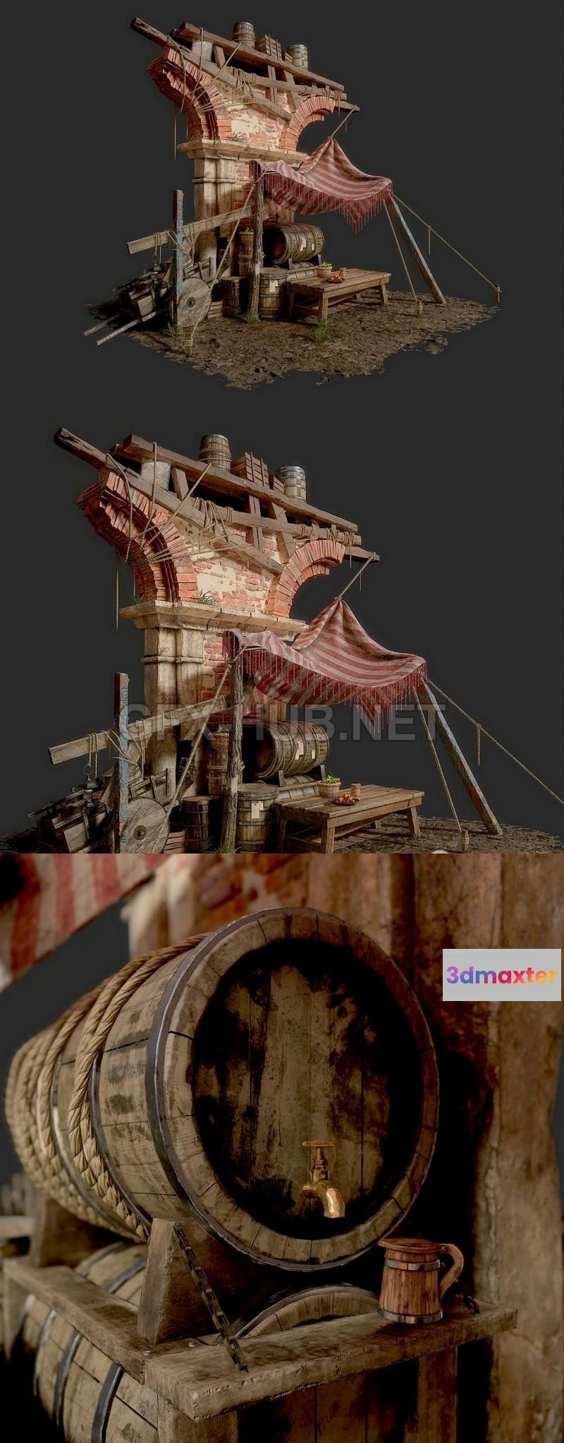 - Name: PBR Game 3D Model – Old Market Scene