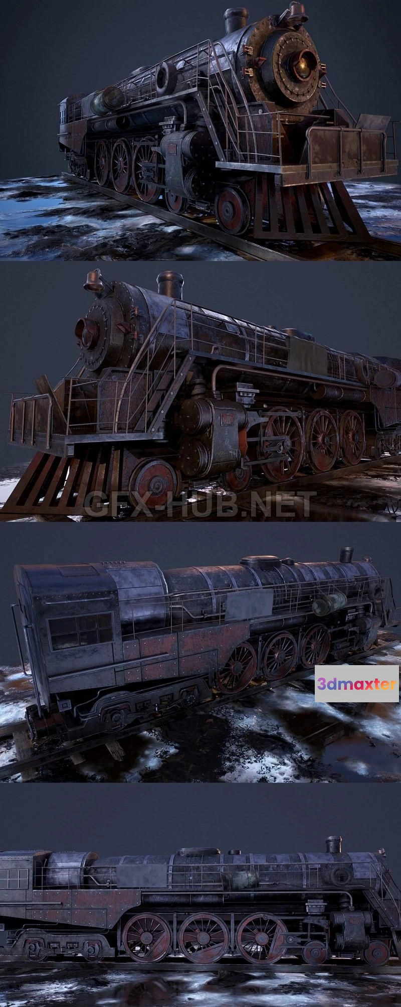 3D Models / 3D Models For Game / PBR Game 3D Model – Post apocalyptic Berkshire Steam Locomotive