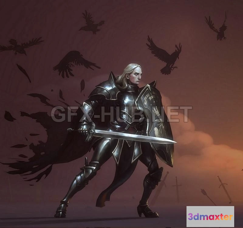 - Name: PBR Game 3D Model – Raven Knight