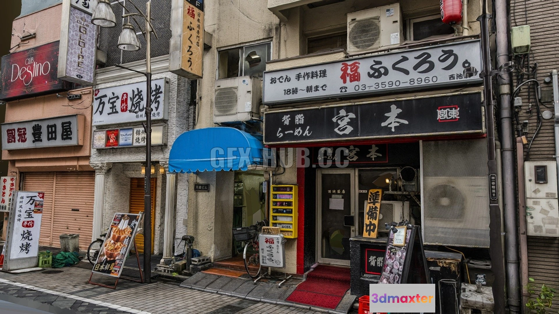 - Name: PBR Game 3D Model – Three japanese business facade scan