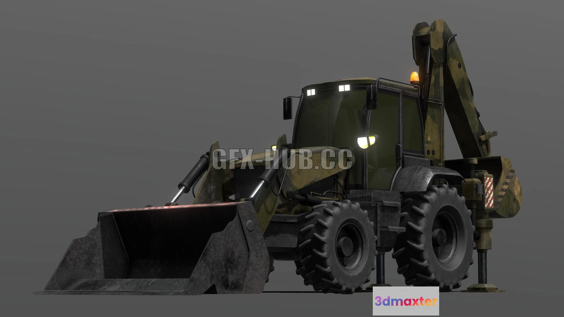- Name: PBR Game 3D Model – Tractor Excavator Model 01 (Military version)