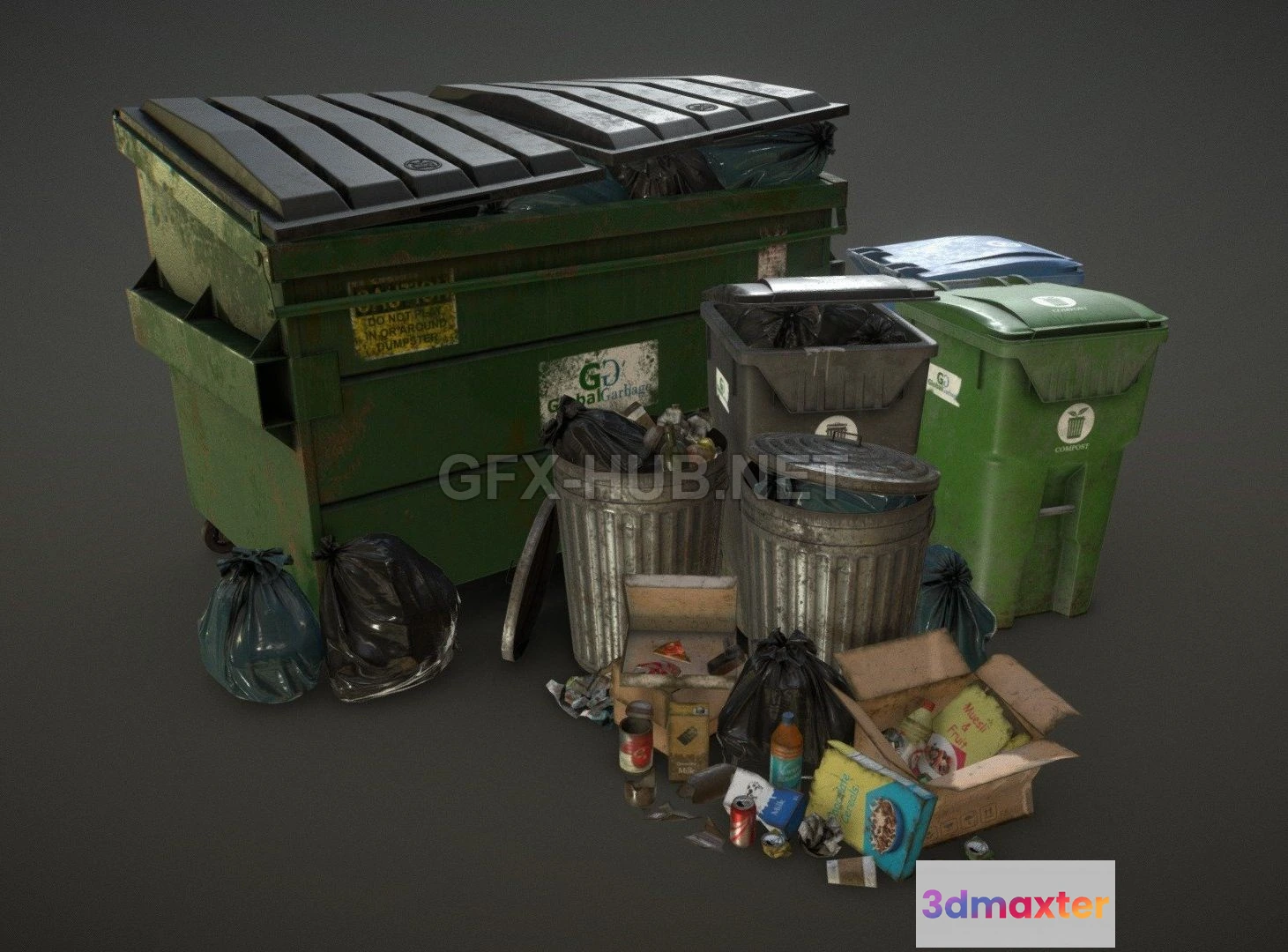 - Name: PBR Game 3D Model – Urban Trash Pack Vol 3 Low Poly