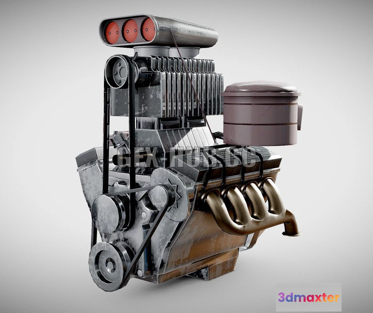 3D Models / 3D Models For Game / PBR Game 3D Model – Vintage car engine V8 turbocharged vehicle