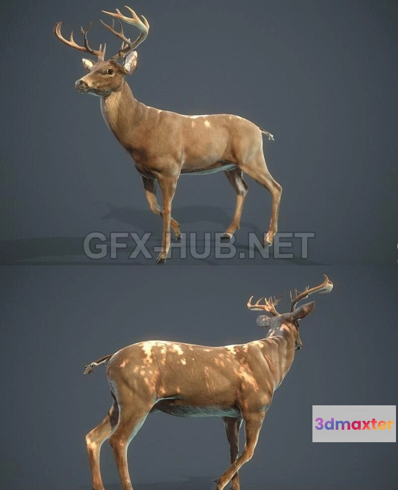 - Name: PBR Game 3D Model – White-tailed Deer
