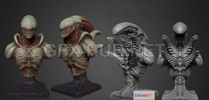 3D Models / 3D Models For Game / PBR Game 3D Model – Xenomorph Bust
