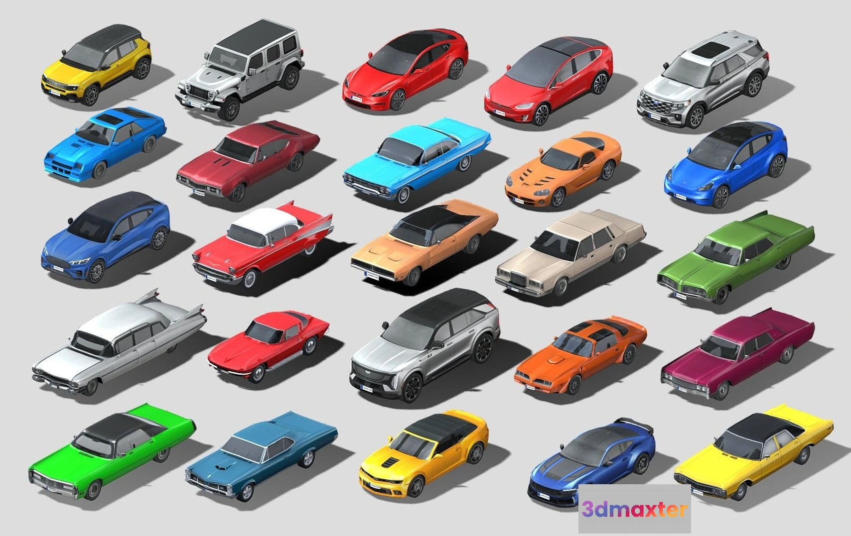 PBR Game 3D Models – 25 Low Poly Car Models American Muscle