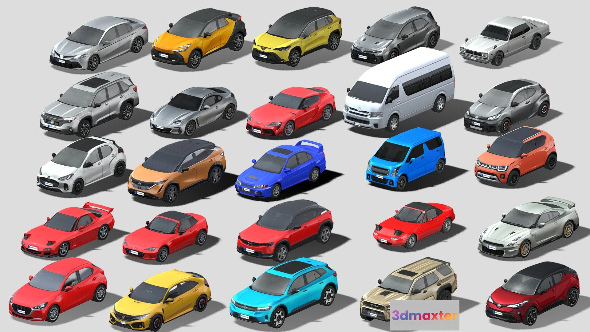 - Name: PBR Game 3D Models – 25 Low Poly Car Models Japanese Icons