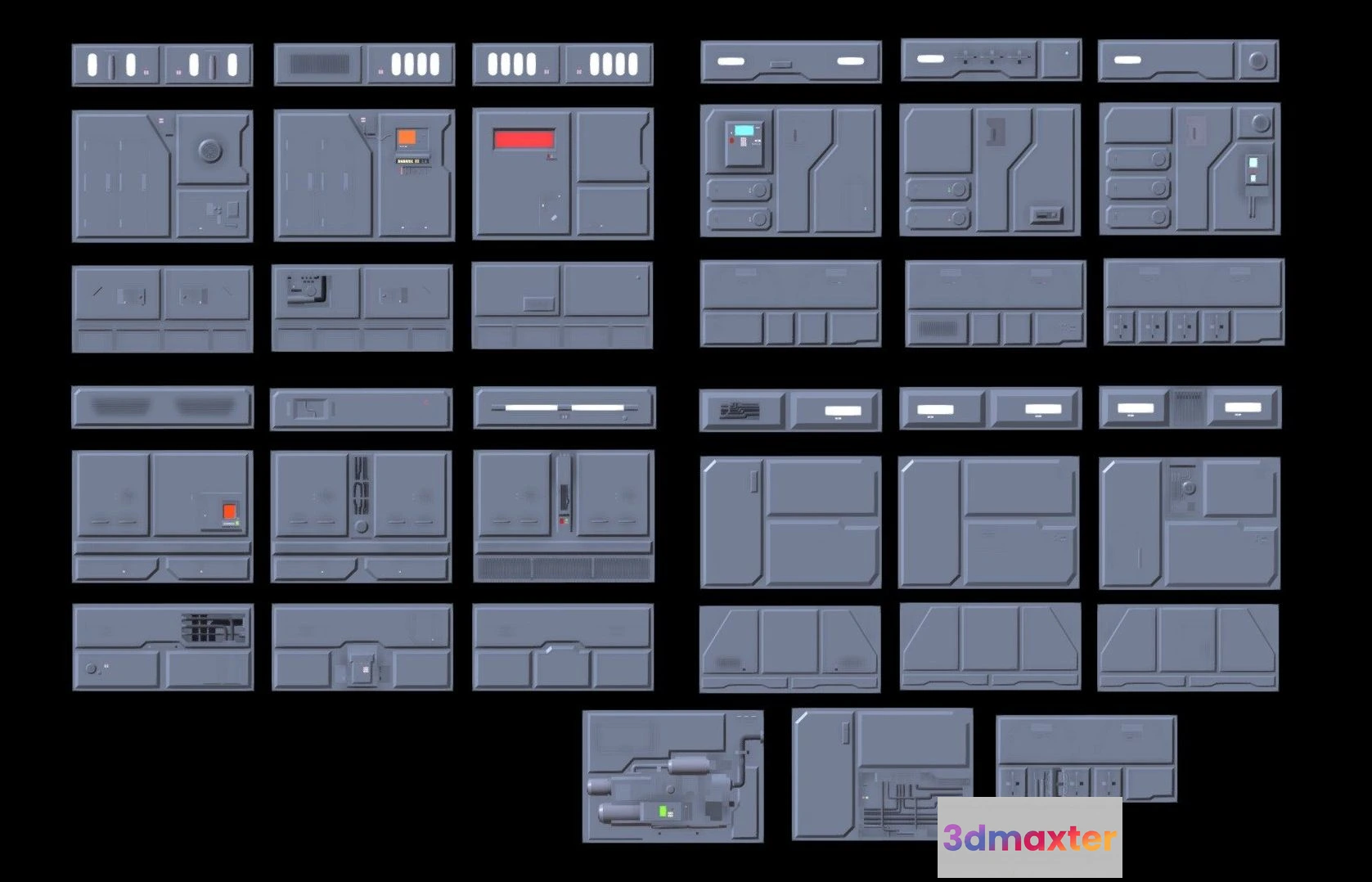 - Name: PBR Game 3D Models – 39 Sci Fi Wall Panels With Materials Kitbash