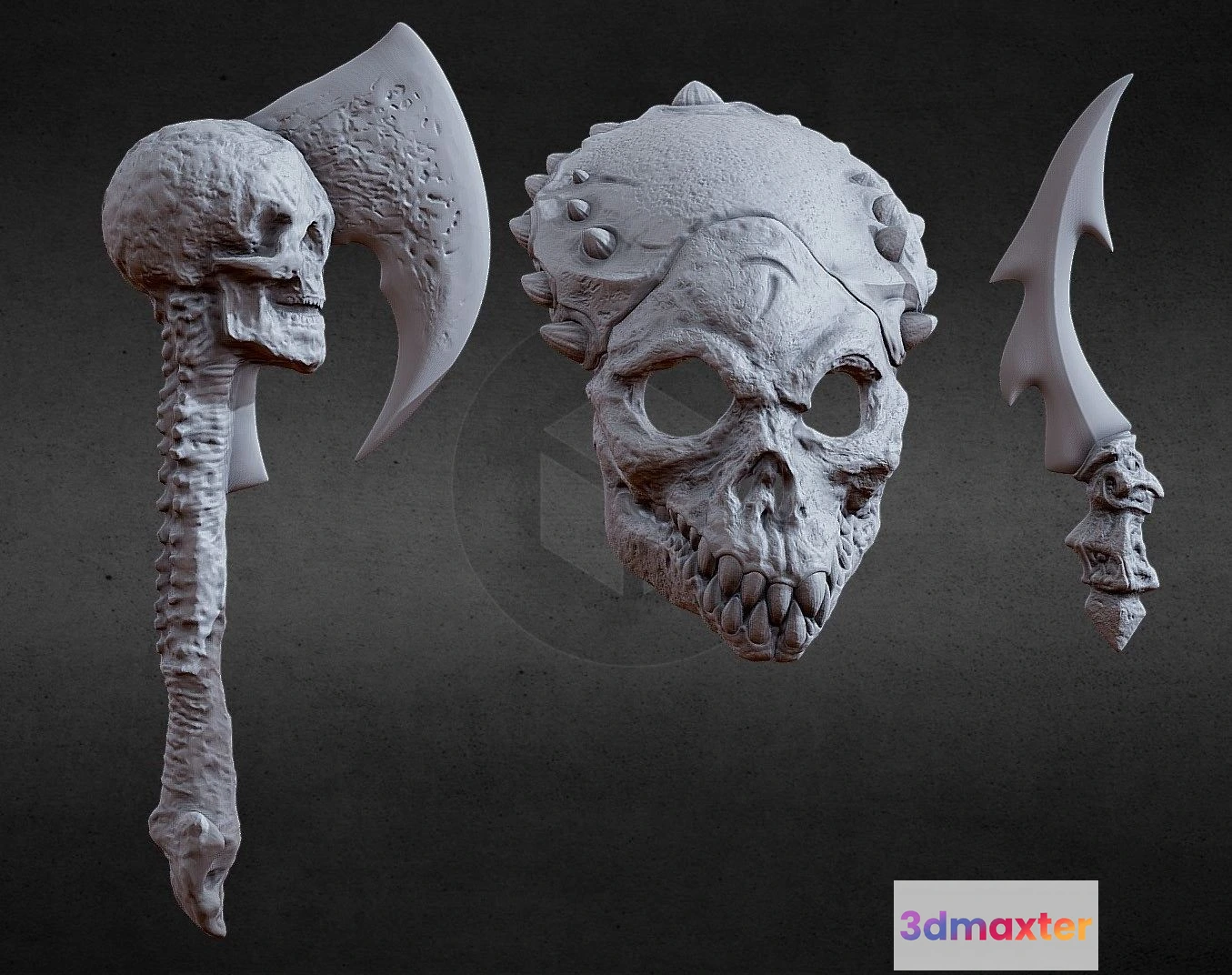 PBR Game 3D Models – 3Dprntabl Shaman Predator Biomask Axe And Dagger 3D Max