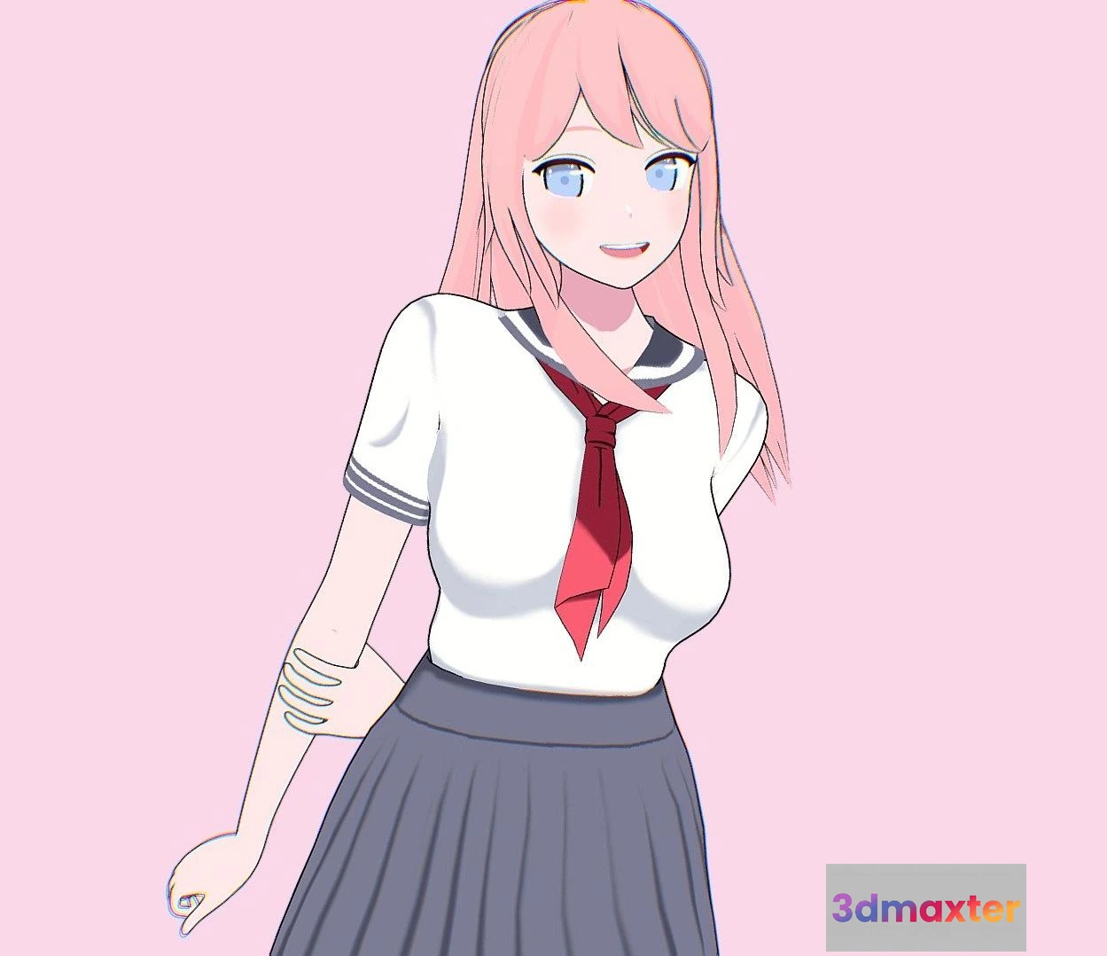 PBR Game 3D Models – Anime Girl Student 5 3D Max