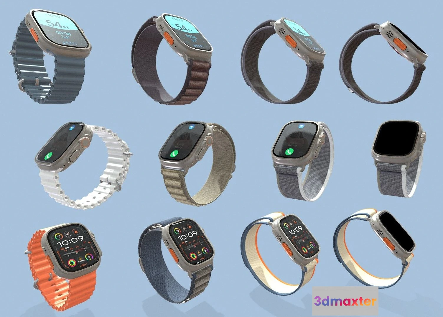 PBR Game 3D Models – Apple Watch Ultra 2 All Colors 3D Max