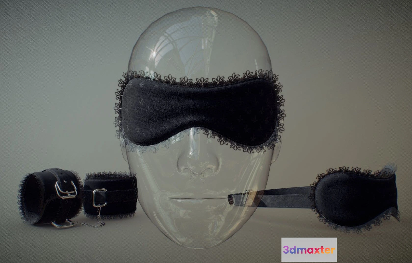 PBR Game 3D Models – Black Fabric Blindfold Cuffs Set 3D Max