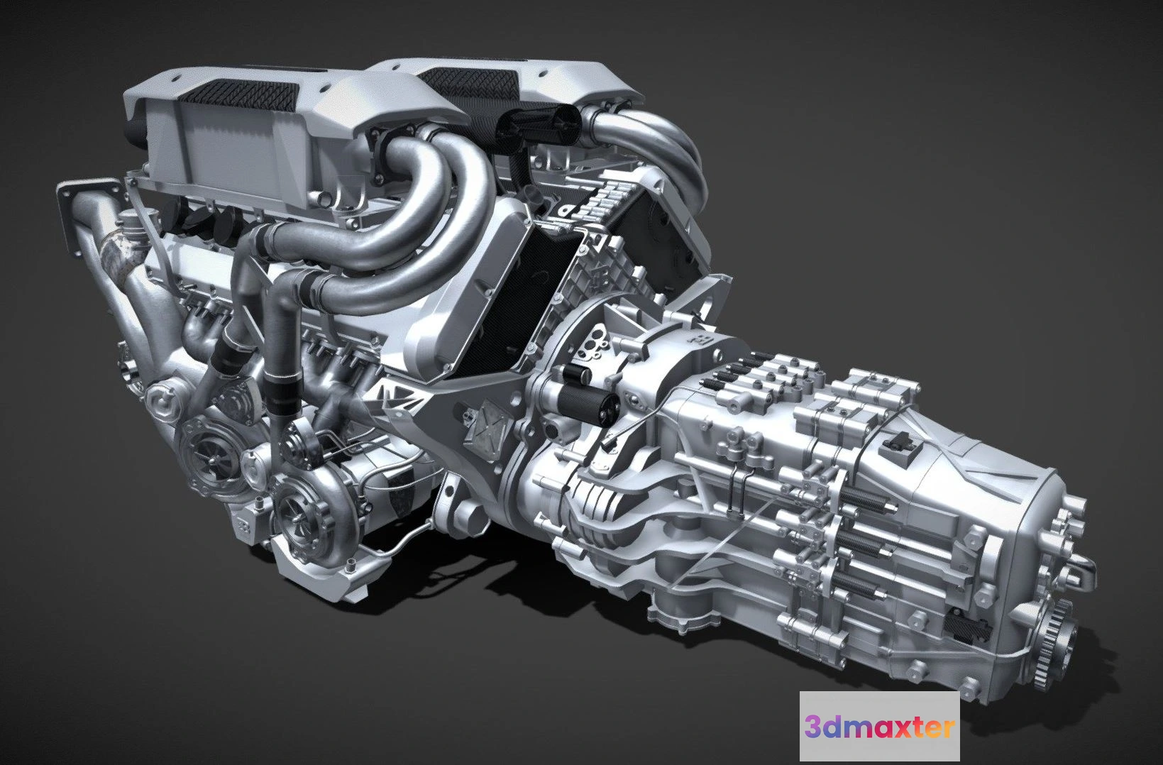 PBR Game 3D Models – Bugatti Chiron W16 Engine 3D Max