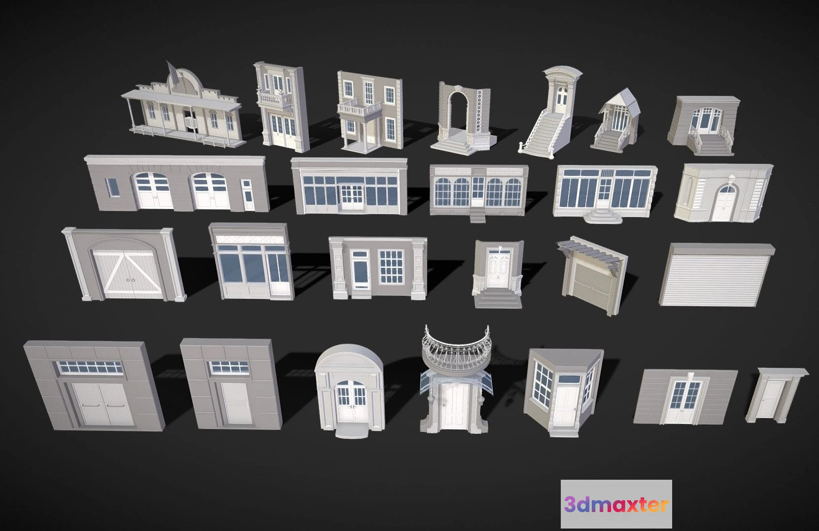 PBR Game 3D Models – Building Facade Collection 1 25 Pieces 3D Max