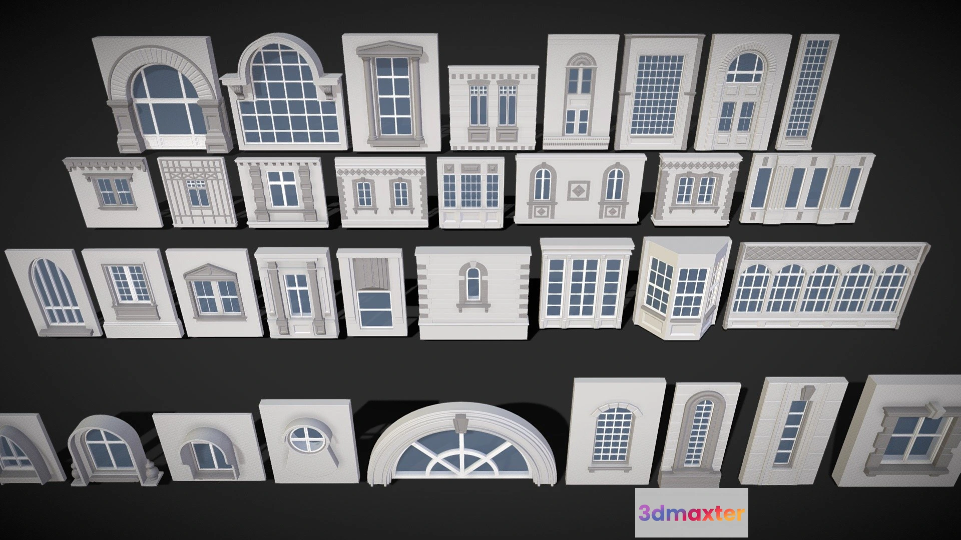 PBR Game 3D Models – Building Facade Collection 4 34 Pieces 3D Max