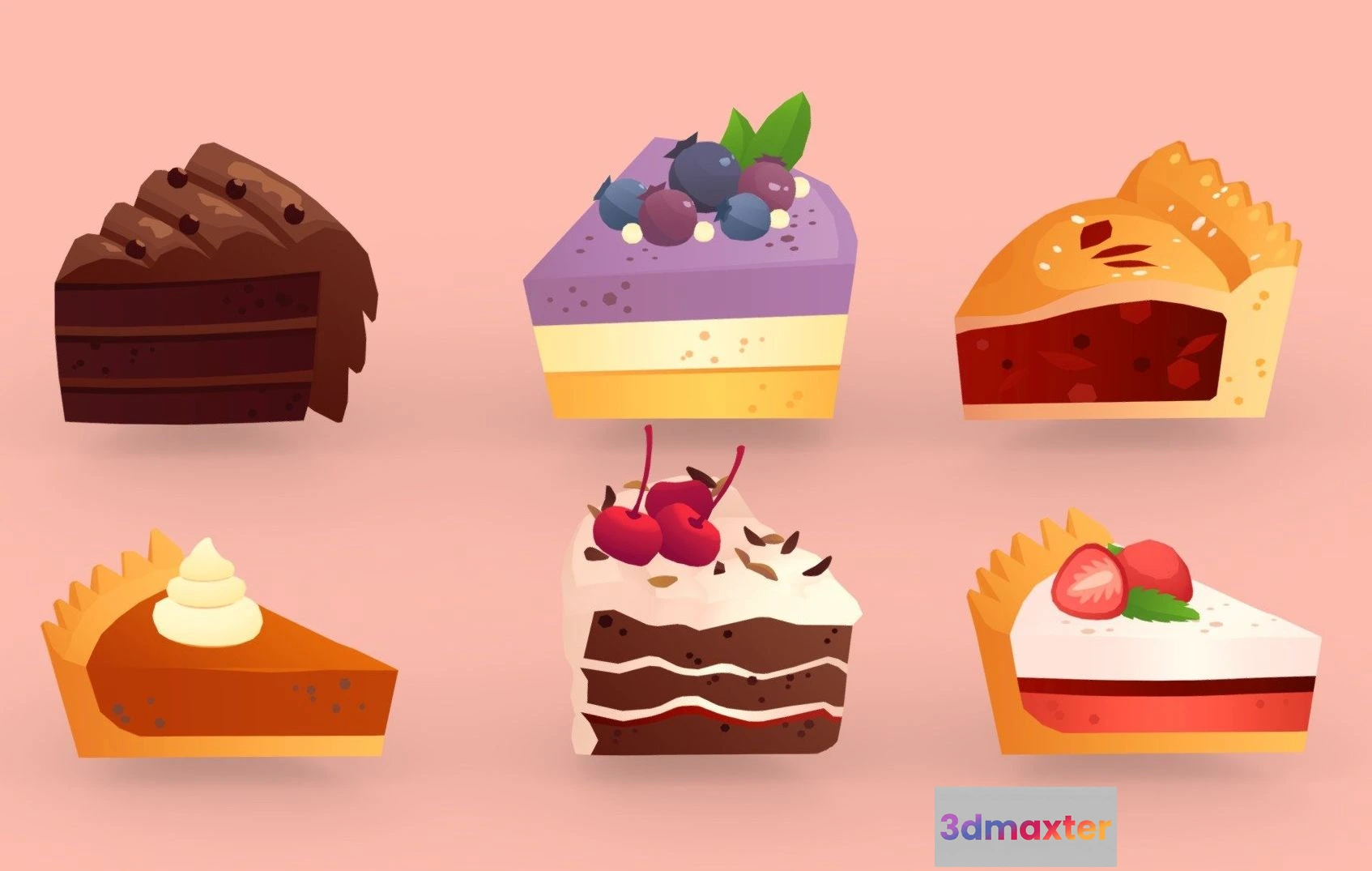 - Name: PBR Game 3D Models – Cartoon Cakes And Pies