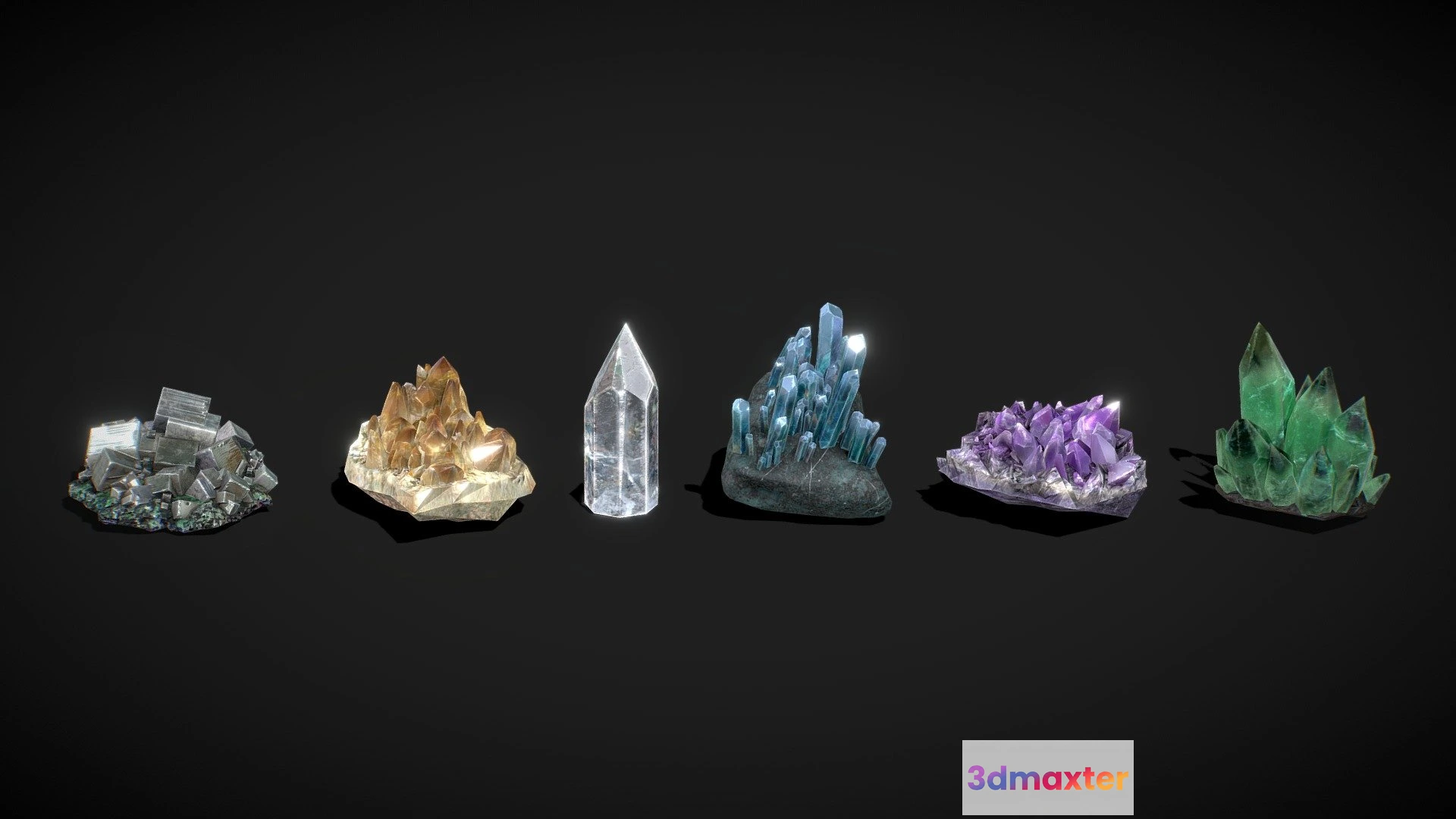 - Name: PBR Game 3D Models – Crystals Quartz Minerals Low Poly Pack