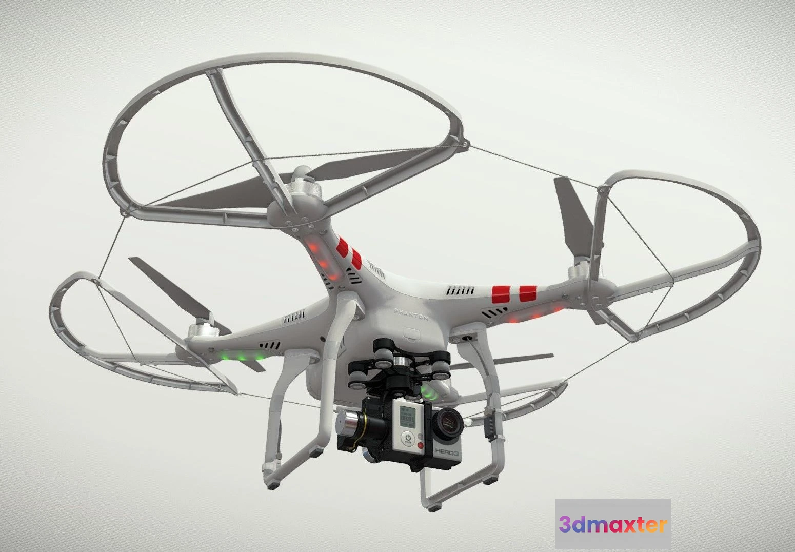 PBR Game 3D Models – Dji Phantom 2 Quadcopter Prop Guard Gopro Hero3 3D Max