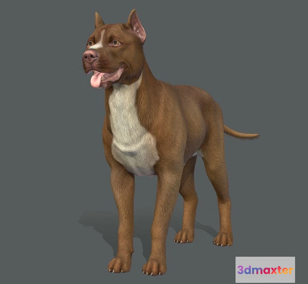 PBR Game 3D Models – Dog Pitbull Terrier V2 3D Max