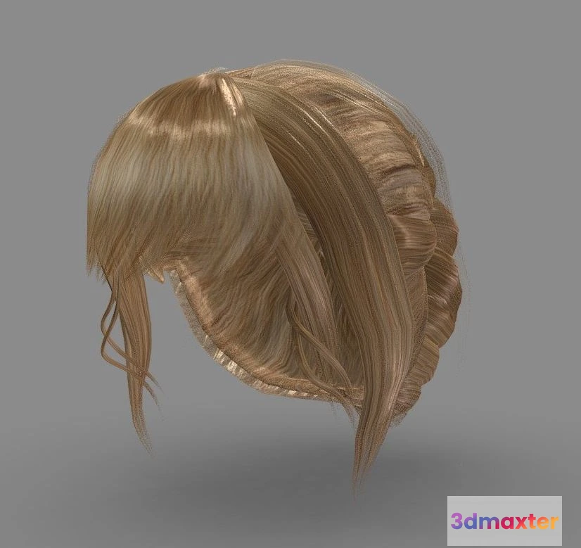 3D Models / 3D Models For Game / PBR Game 3D Models – Endless Song Female Updo Polygon Hair 3D Max