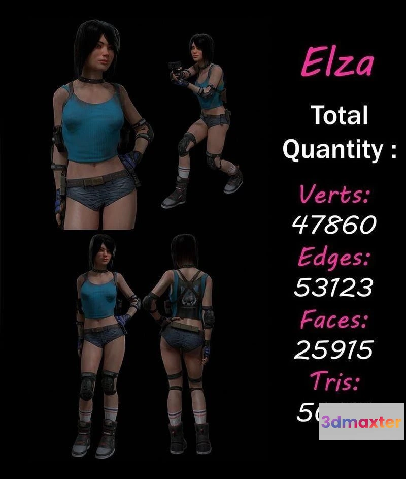 - Name: PBR Game 3D Models – Game female character Low-poly