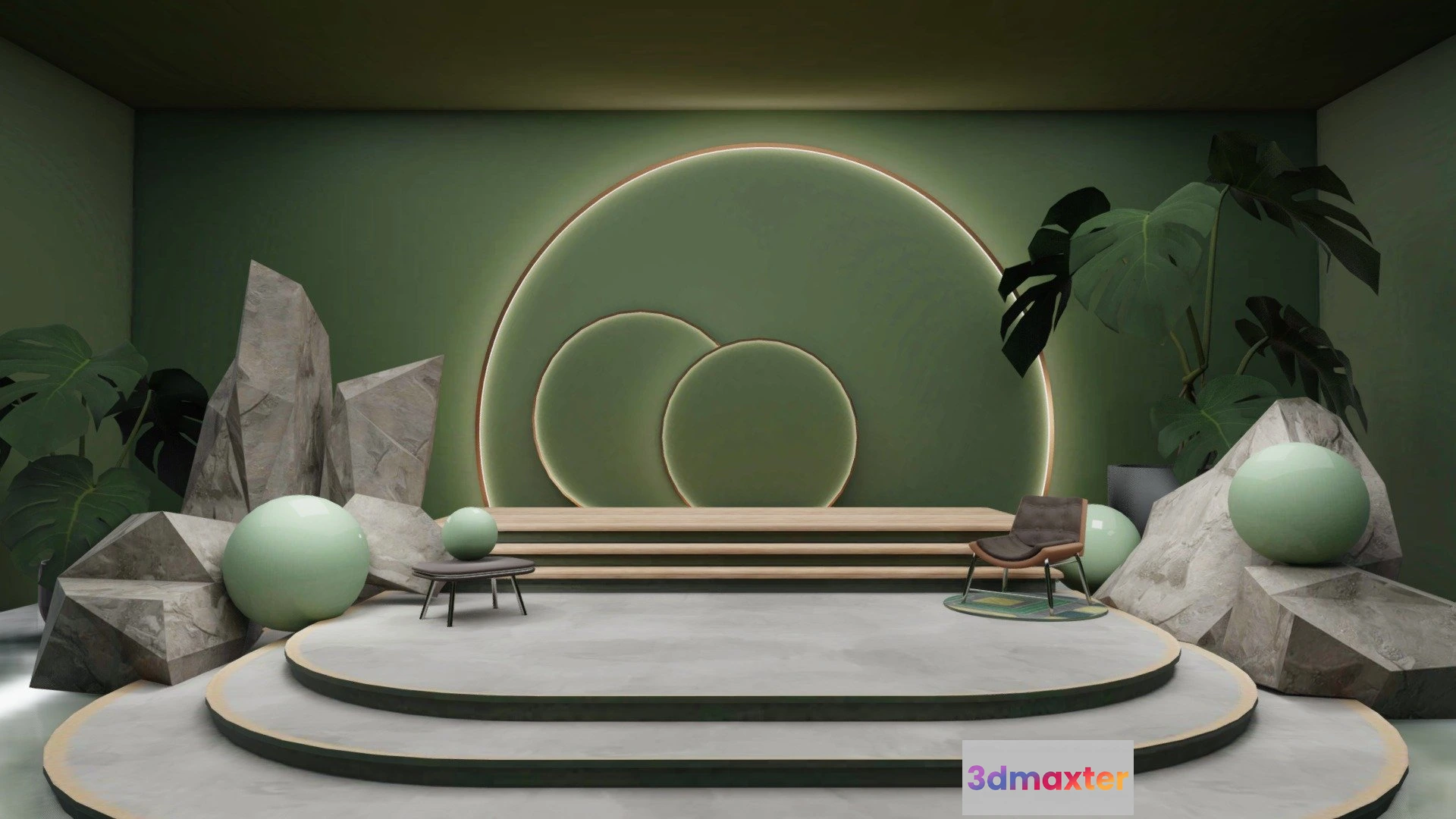 PBR Game 3D Models – Garden Space Green Stage Baked 3D Max