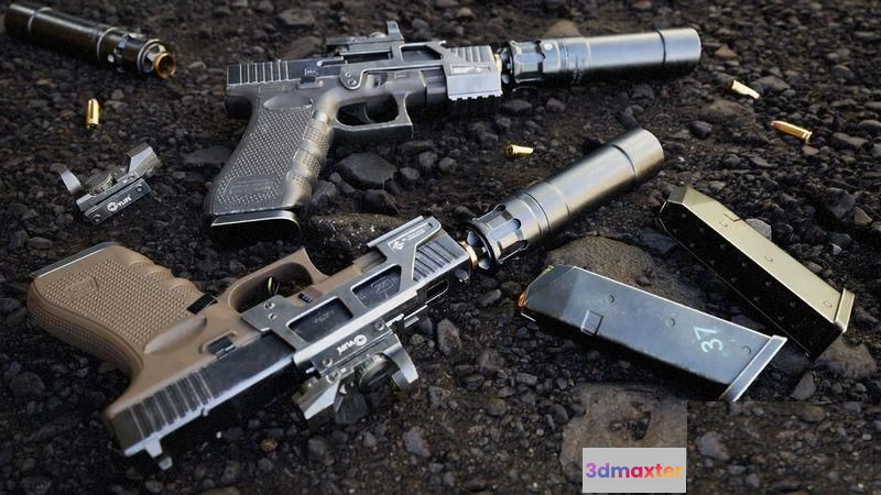 3D Models / 3D Models For Game / PBR Game 3D Models – Glock 19 Gen 4 with Attachments 3D Max