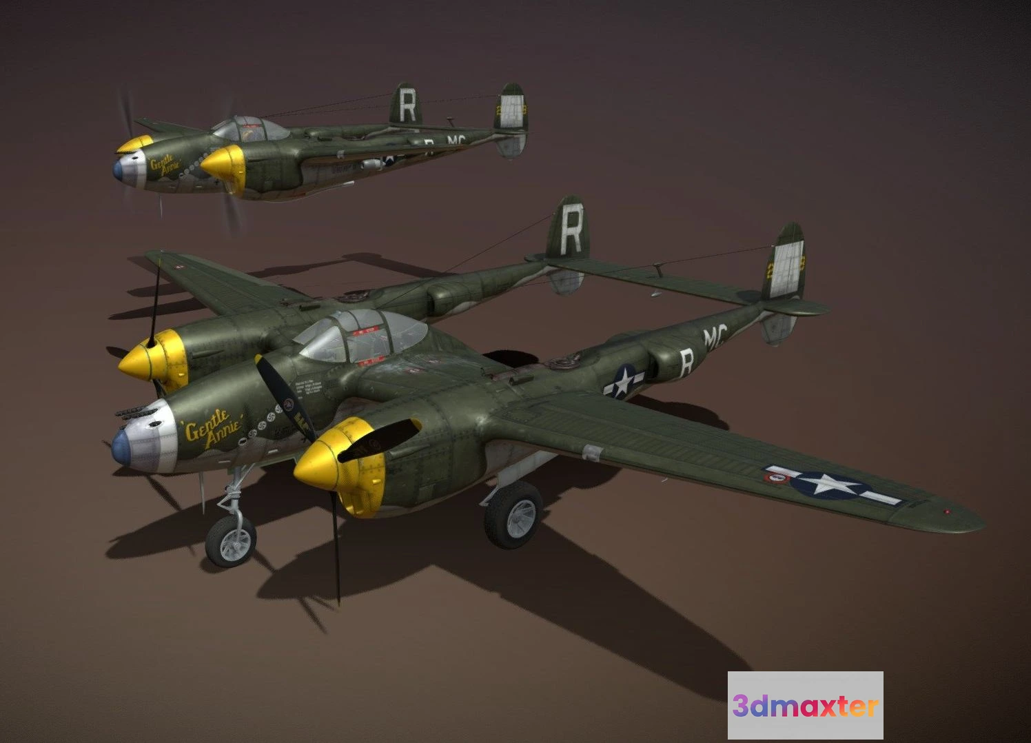 PBR Game 3D Models – Lockheed P 38 Lightning Gentle Annie 3D Max