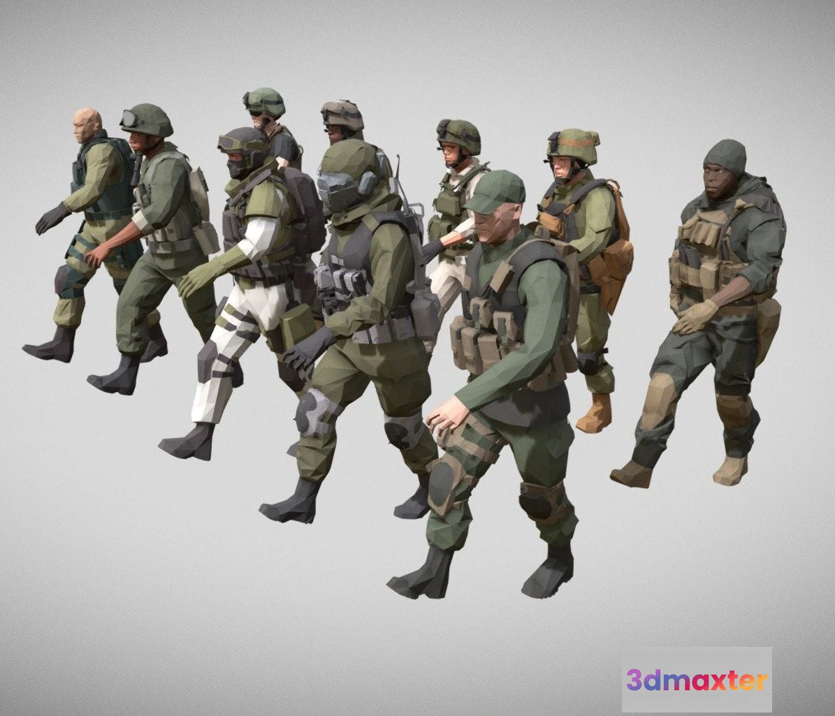 PBR Game 3D Models – Low Poly Army Man Character Pack Animated 3D Max