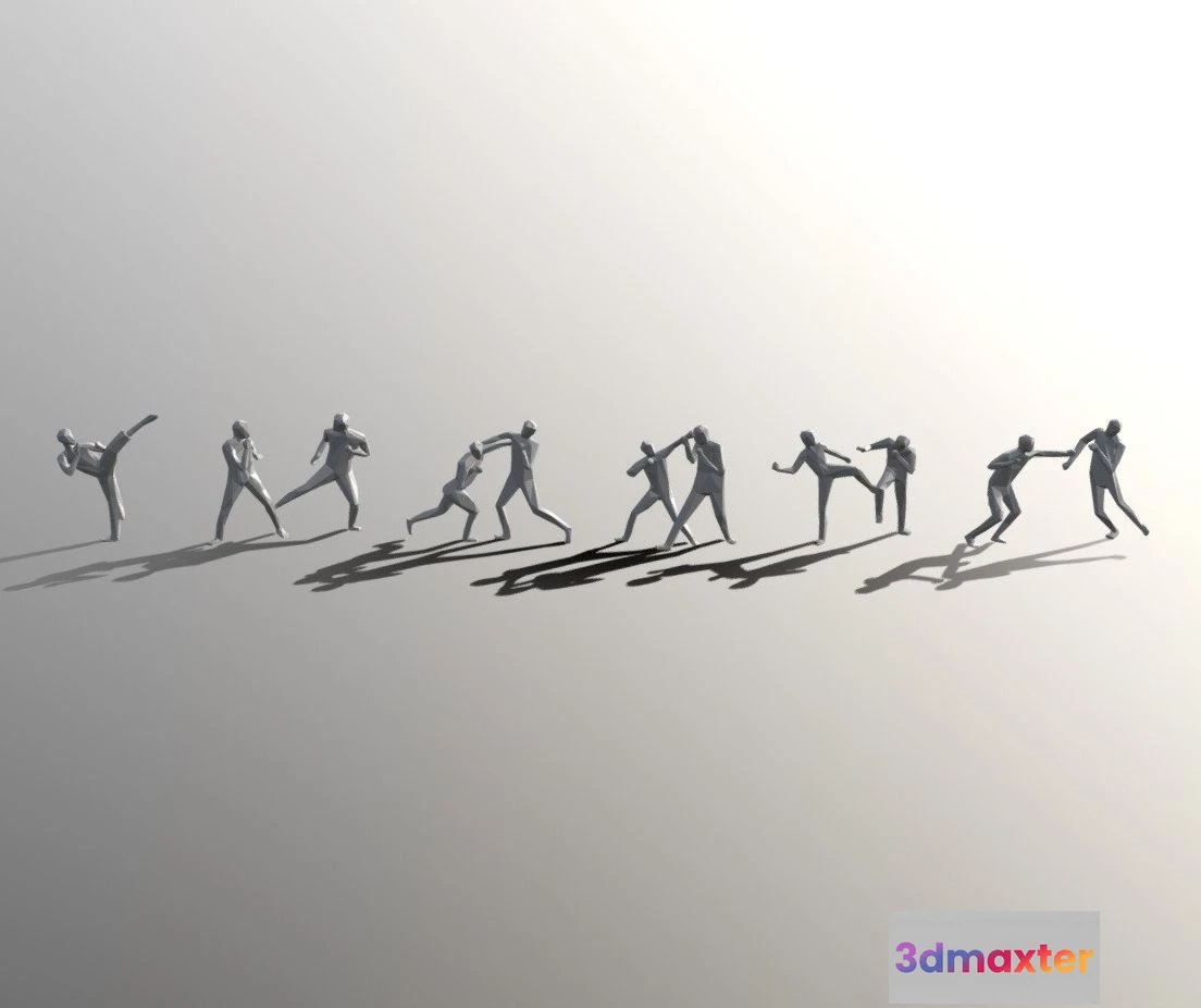 PBR Game 3D Models – Low Poly Posed People Fighting Pack 3D Max