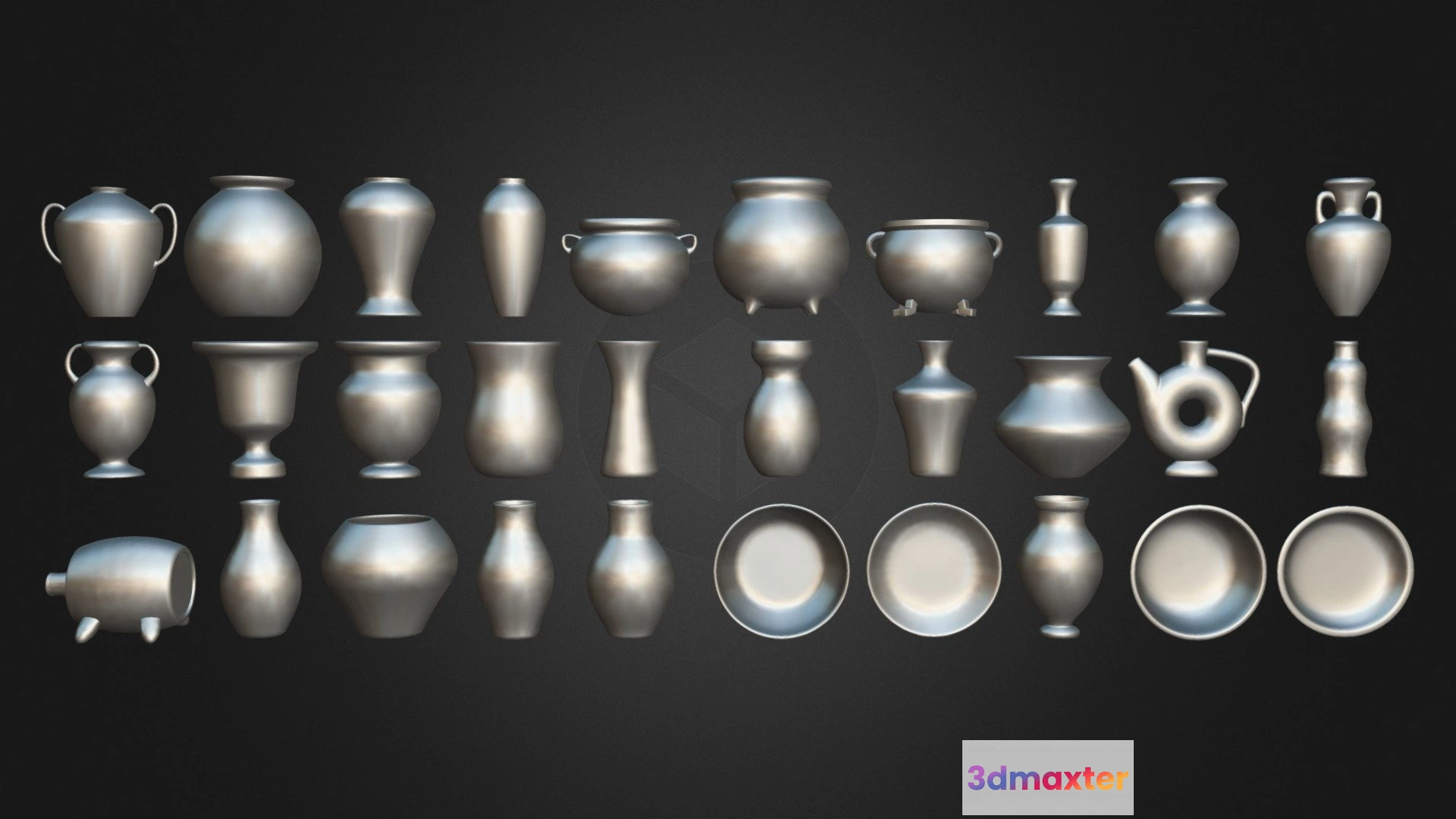 PBR Game 3D Models – Pack Of 30 Potteries Kitbash Volume 01 3D Max