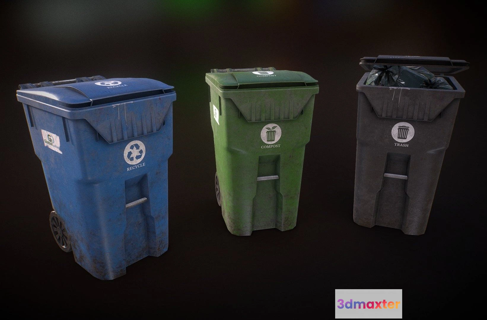 - Name: PBR Game 3D Models – Plastic Trash Bin With Garbage Bags Low Poly