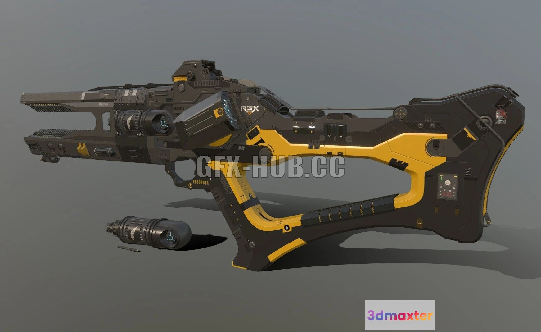 - Name: PBR Game 3D Models – Rail-Gun Sci-Fi 4F