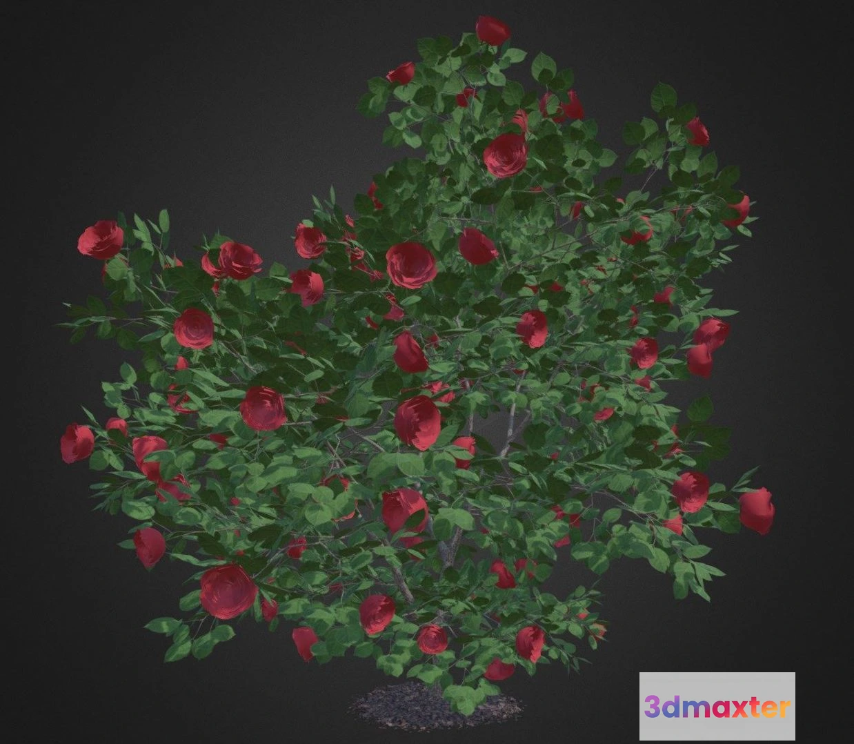 - Name: PBR Game 3D Models – Red Rose Shrub