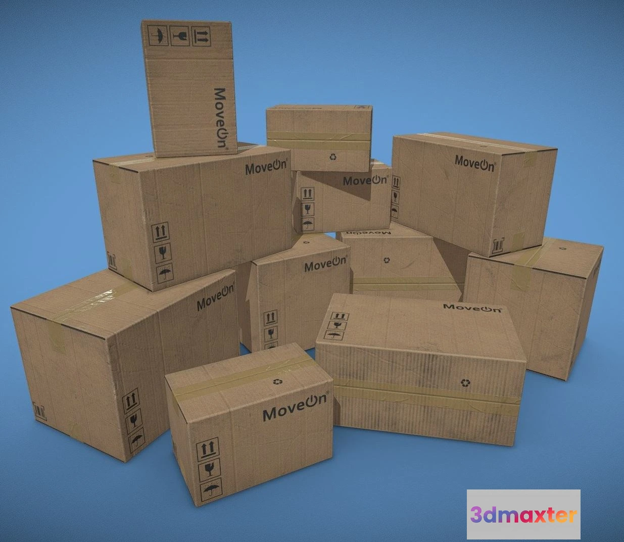 PBR Game 3D Models – Set Of Cardboard Boxes 3D Max