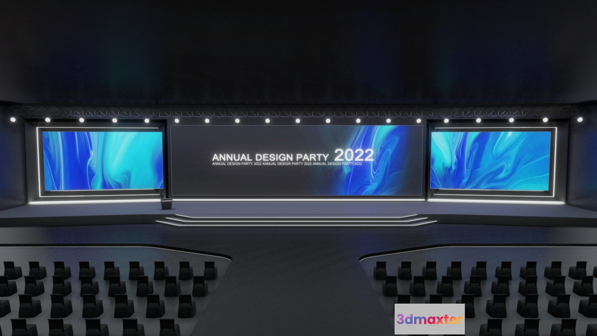 PBR Game 3D Models – Stage For Business Event Auditorium Baked 3D Max