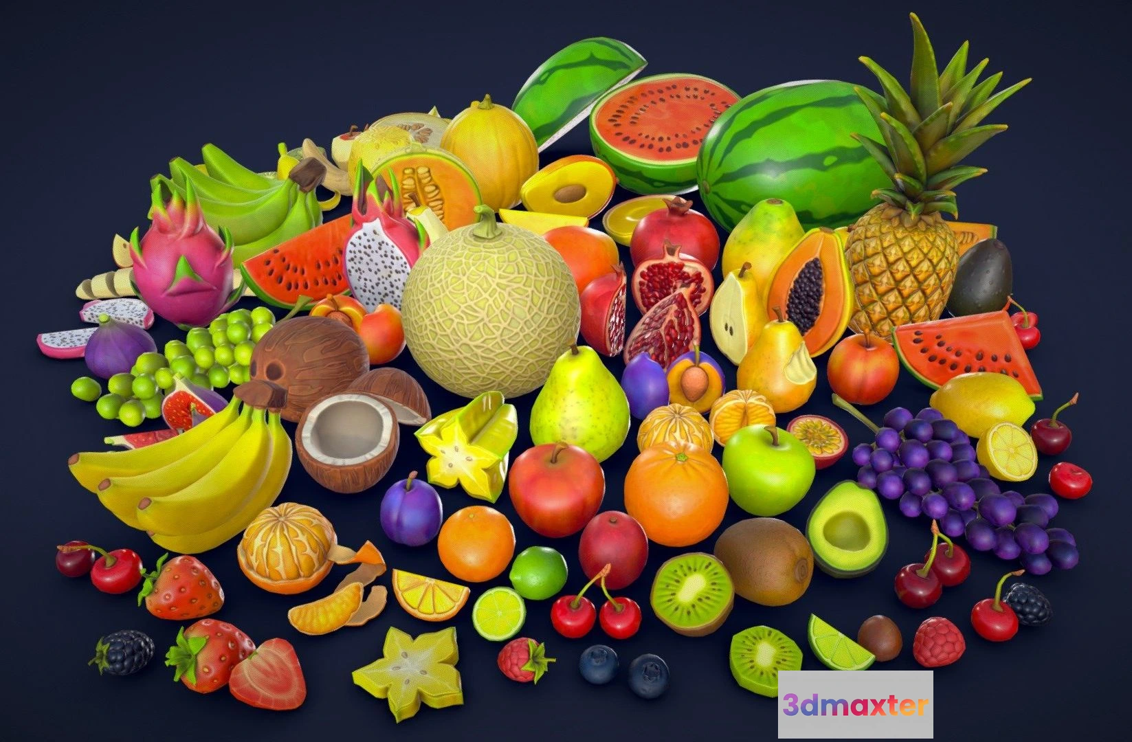 1531172 - PBR Game 3D Models - Stylized Fruits Collection Low Poly 3D Max