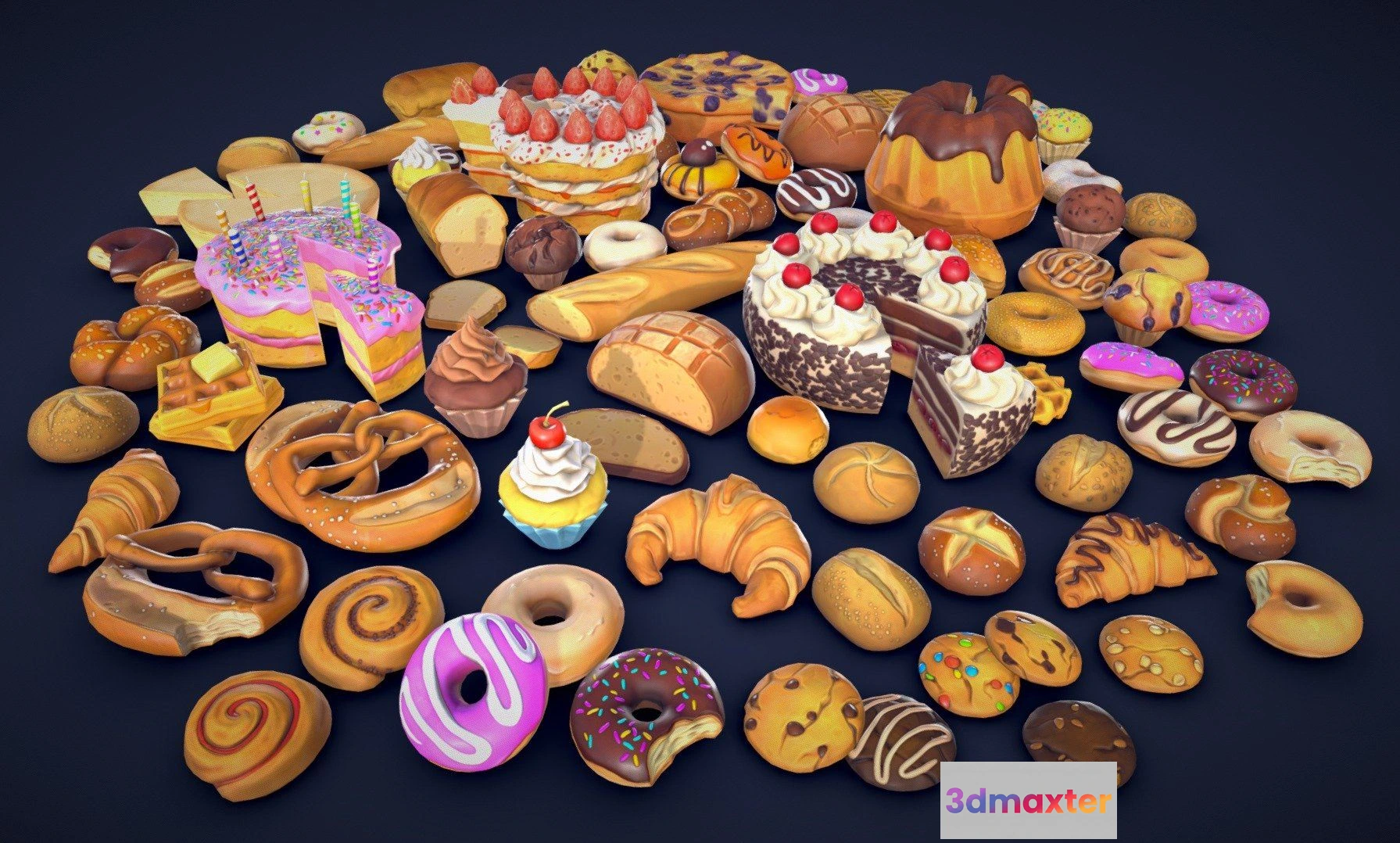 PBR Game 3D Models – Stylized Pastries Collection Low Poly 3D Max