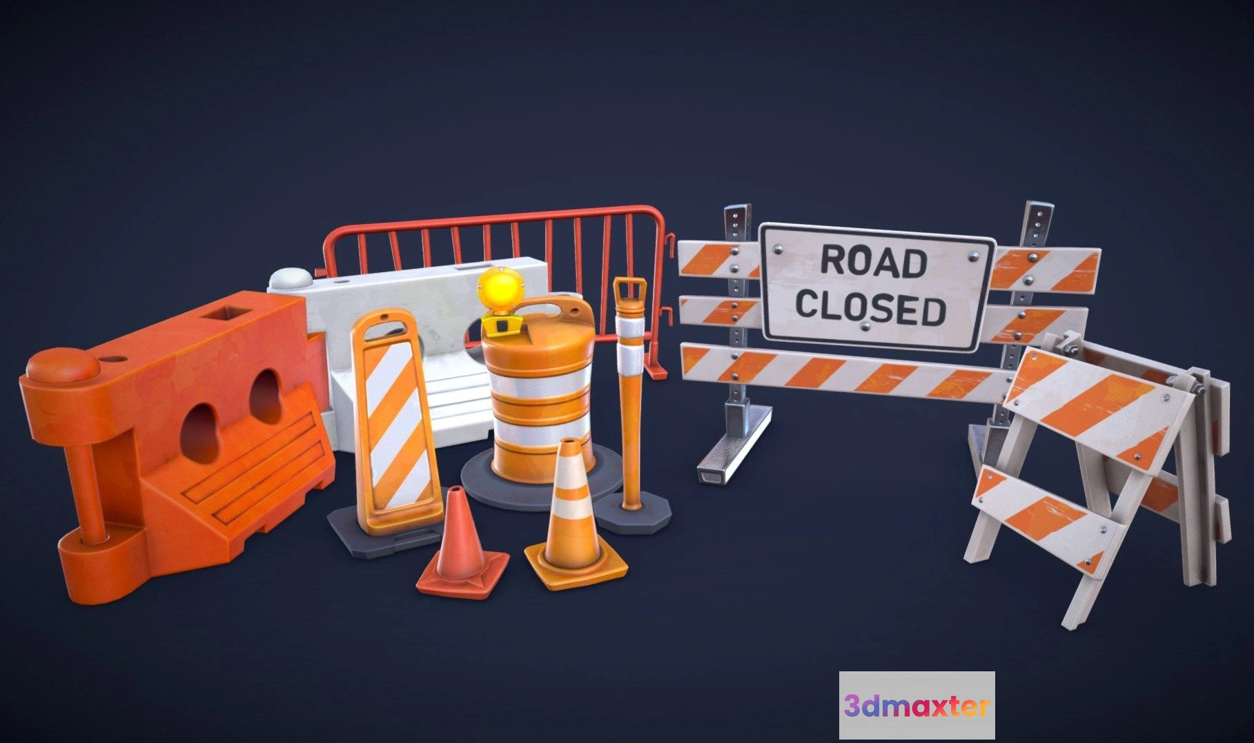 - Name: PBR Game 3D Models – Stylized Traffic Props And Barricades Low Poly