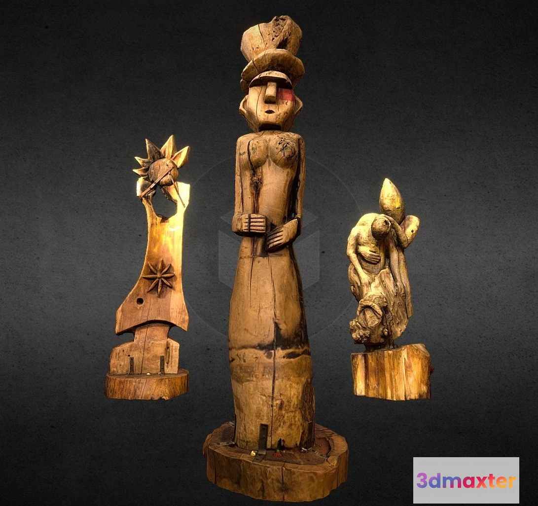 PBR Game 3D Models – Totems Colectivo Originario 3D Max