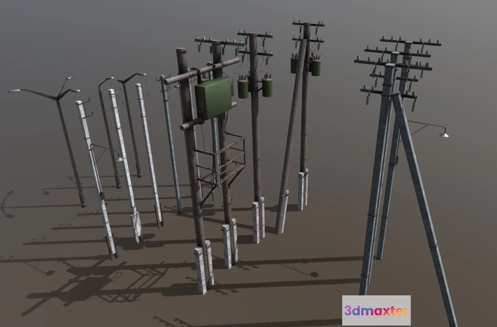 PBR Game 3D Models – Utility Electric Poles Pack 3D Max