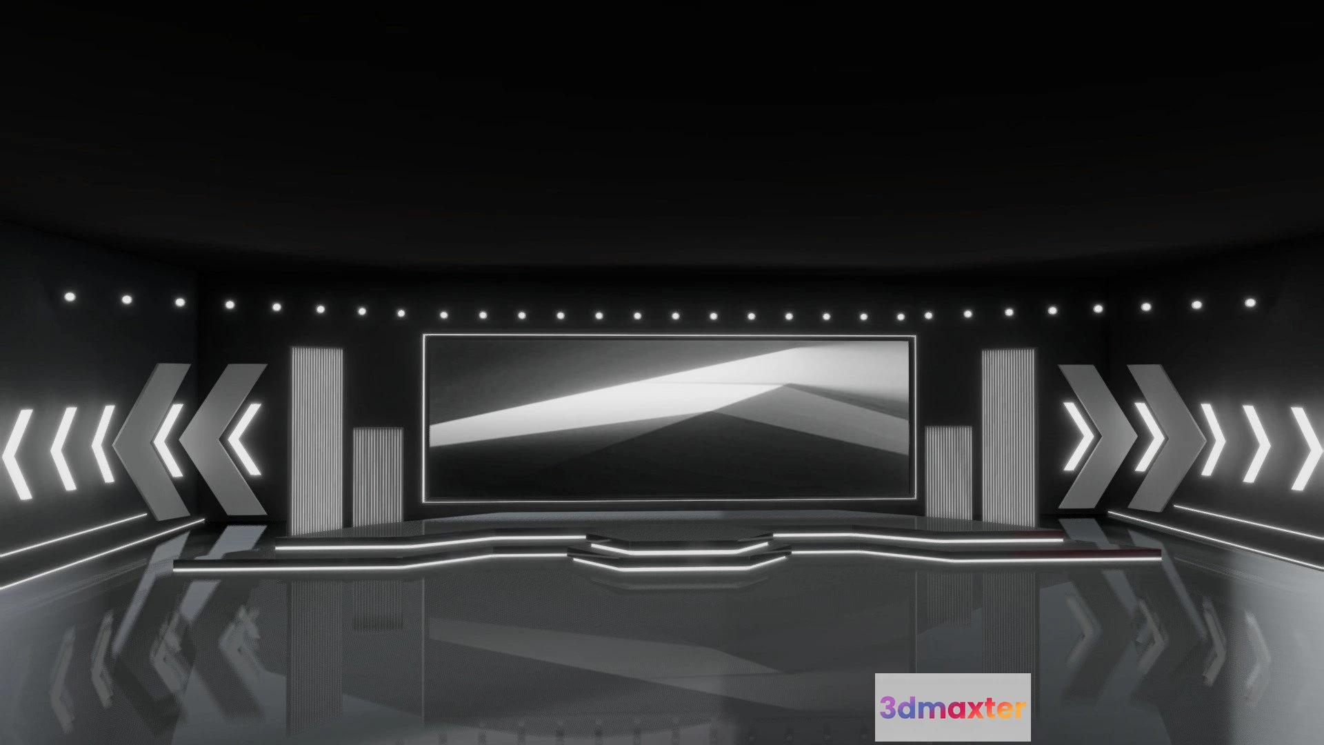 PBR Game 3D Models – Virtual Event Stage Dark Baked 3D Max