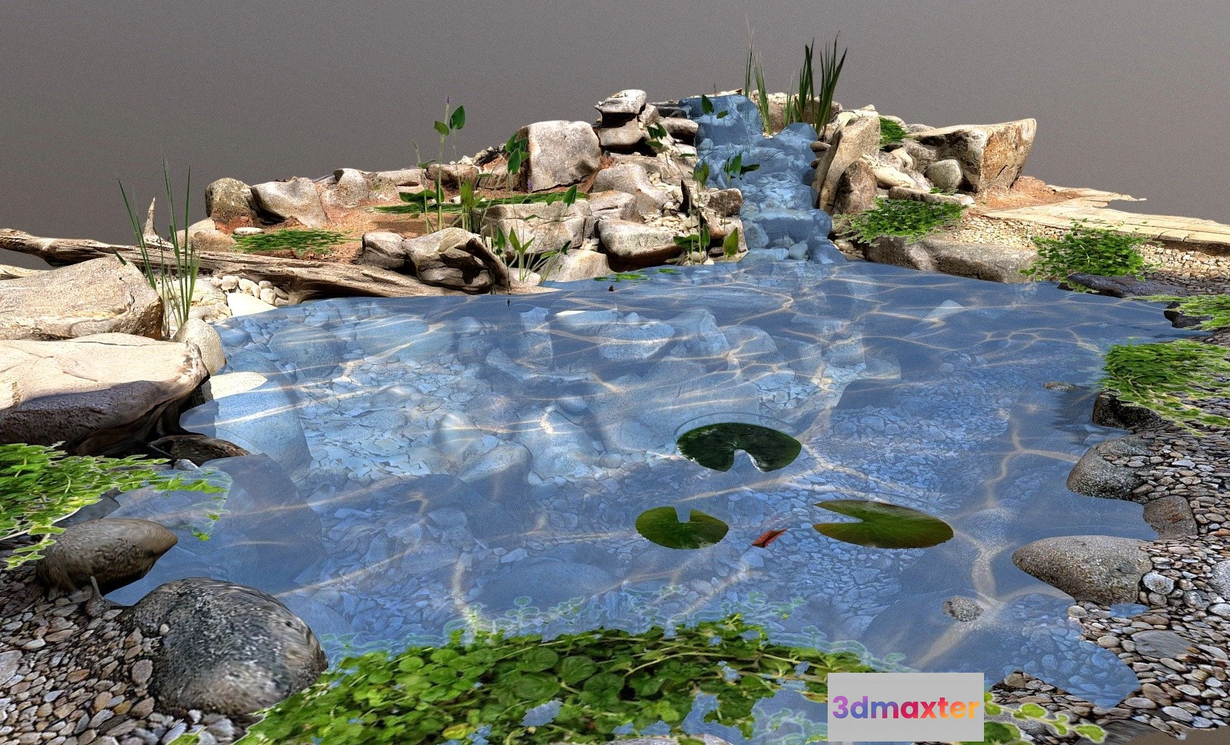 PBR Game 3D Models – Wilsons Creek Pond And Waterfall 3D Max
