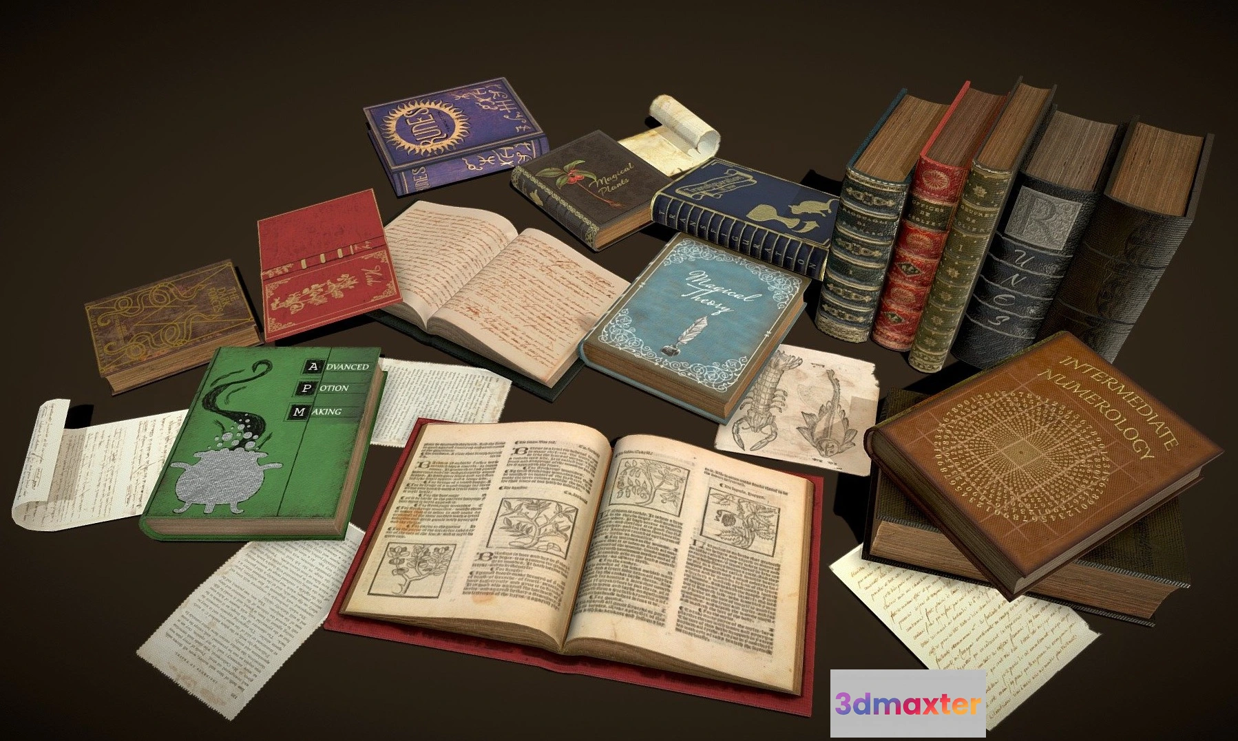 PBR Game 3D Models – Wizard Themed Books And Textbooks 3D Max