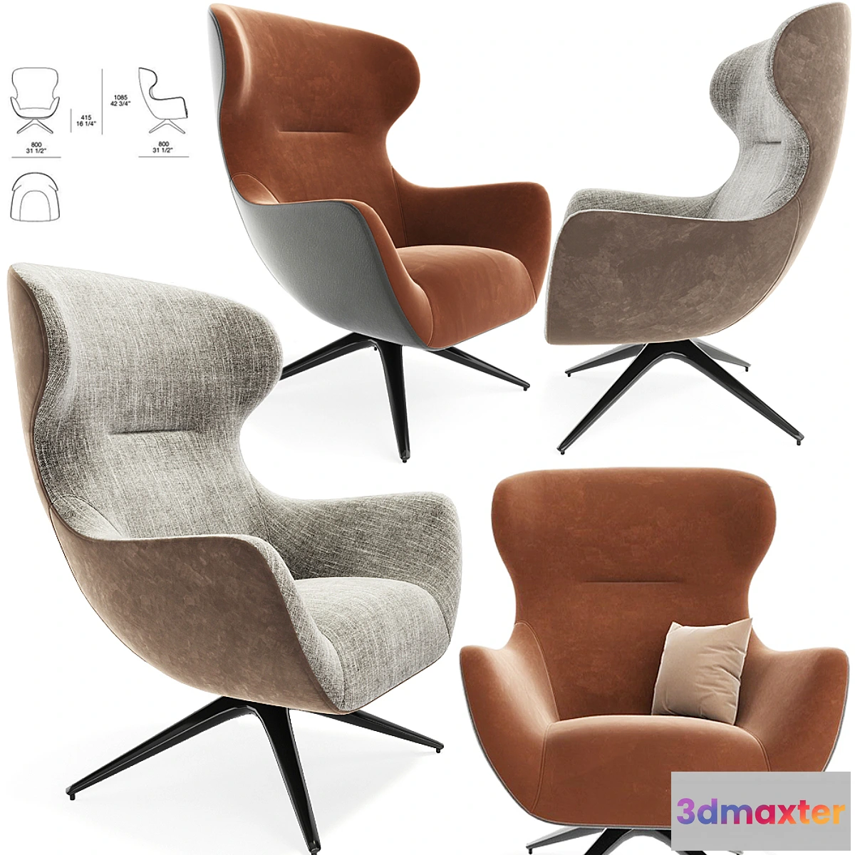 3D Models / Furniture / Arm chair / Poliform Mad Joker Revolving Armchair 3D Max