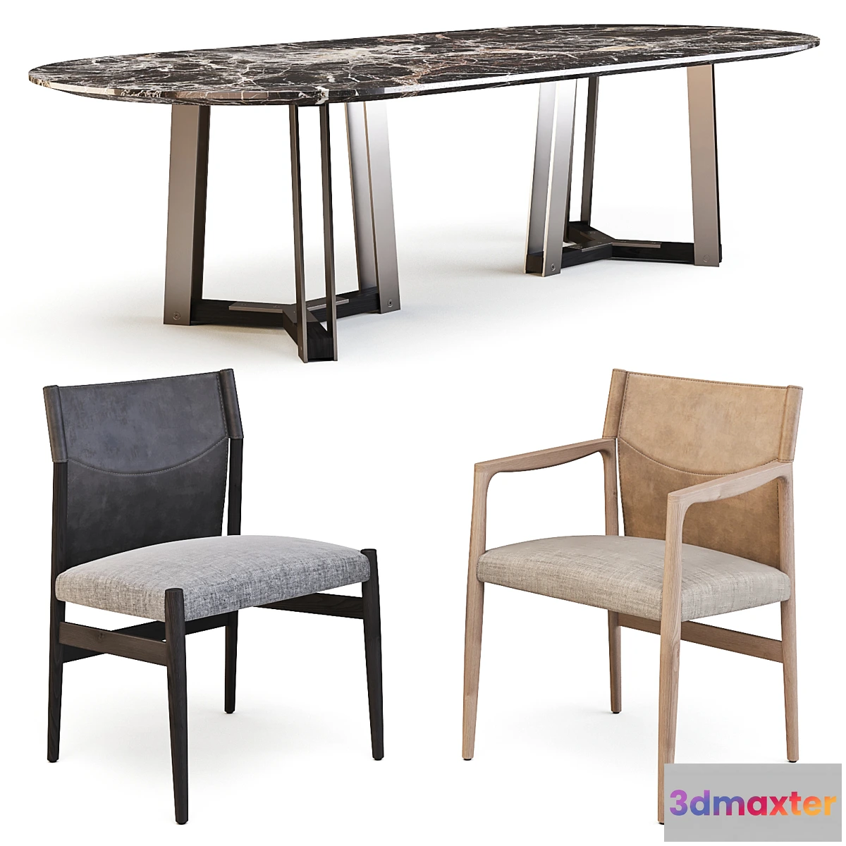 – Sveva Chairs with frame in solid ash with Cuoietto leather back and cover in the fabrics of the collection.
