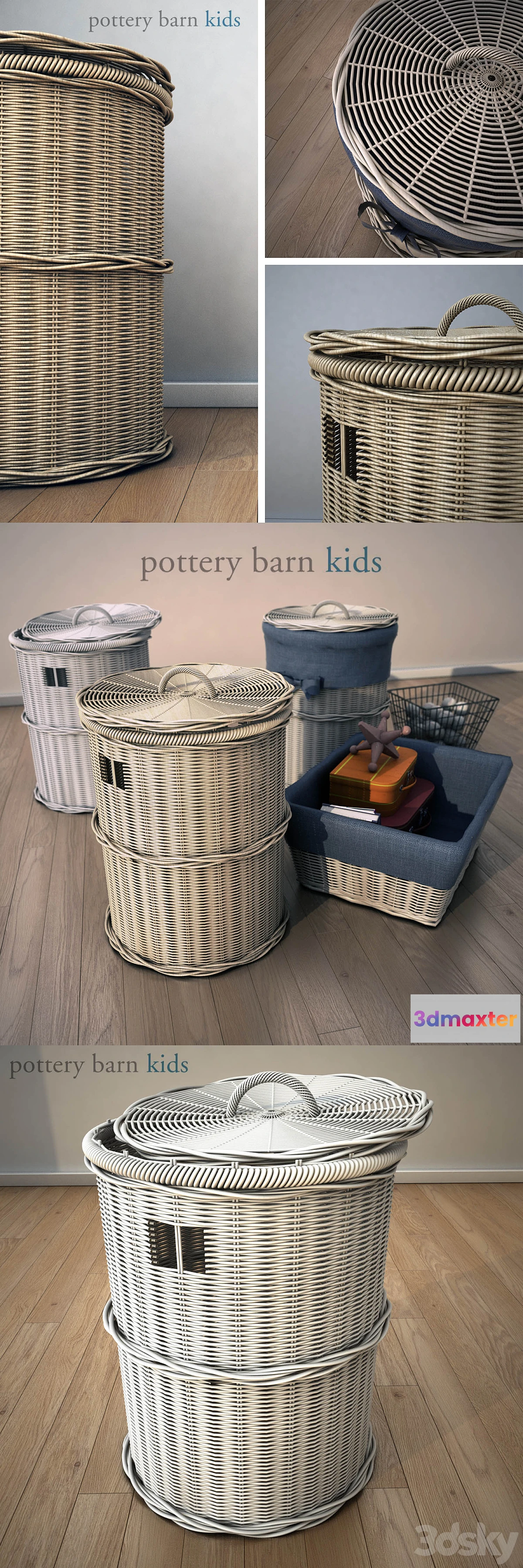 Pottery barn kids basket. Baskets production Pottery Barn woven from natural fibers ustoychevyh for strength and durability all models are added to the preview. added with different colors of wood texture you can change them all to the material set. + Added file .max 2011 version. + Medium Basket Liner + Hamper Liner.