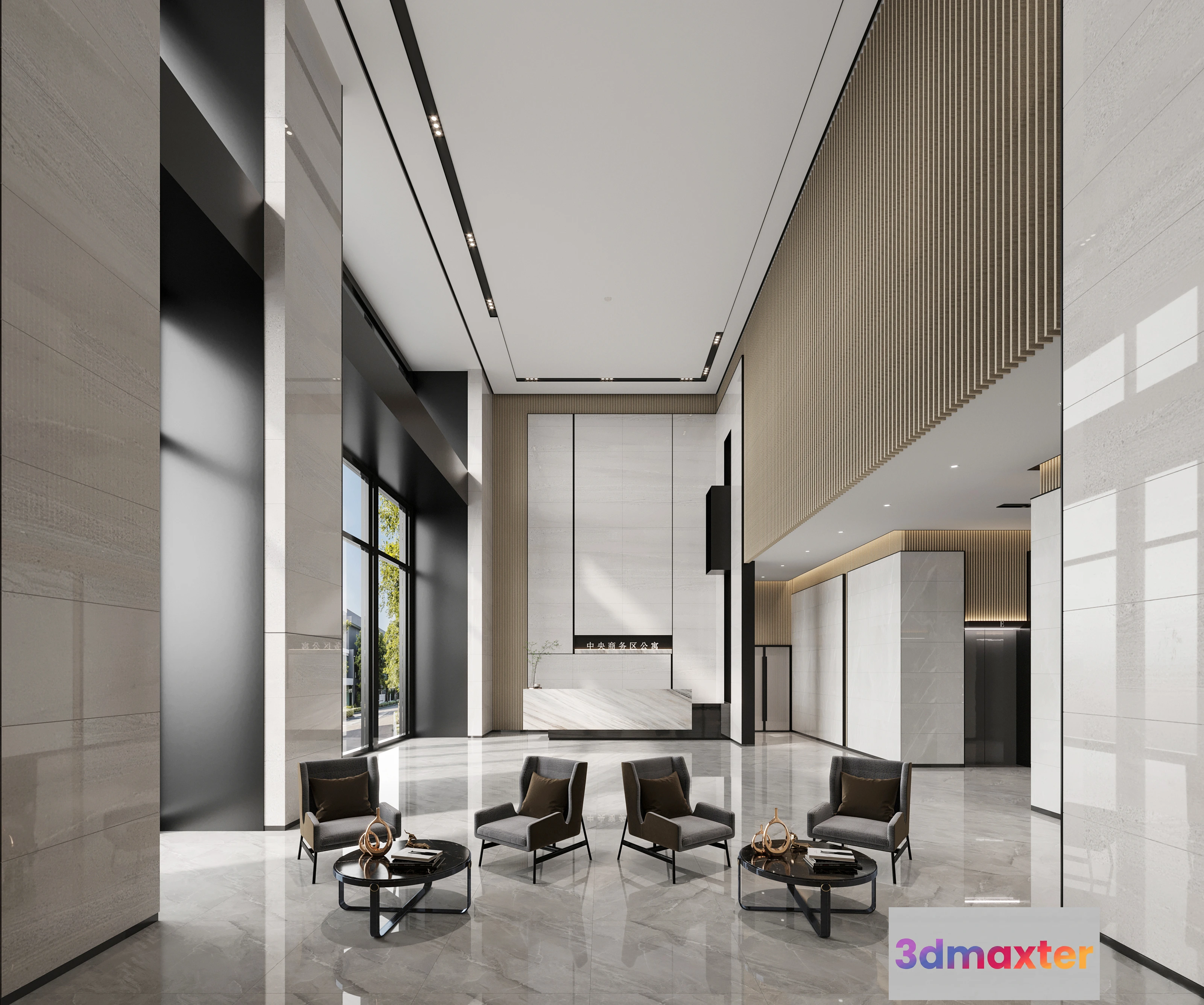 3D Models / 3D Scenes / Interior / Commercial Spaces / PUBLIC SPACE 3D SCENES – LOBBY – 0001