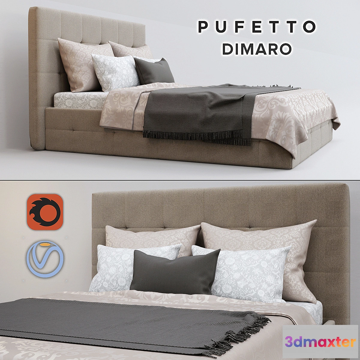 Large model Dimaro from the latest collection Pufetto bed will give your bedroom a luxurious and at the same time refined look. Size width: 1850 mm depth Size: 2170 mm height Size: 360 mm Height of the head: 1190 mm beds: 1600 x 2000 mm
